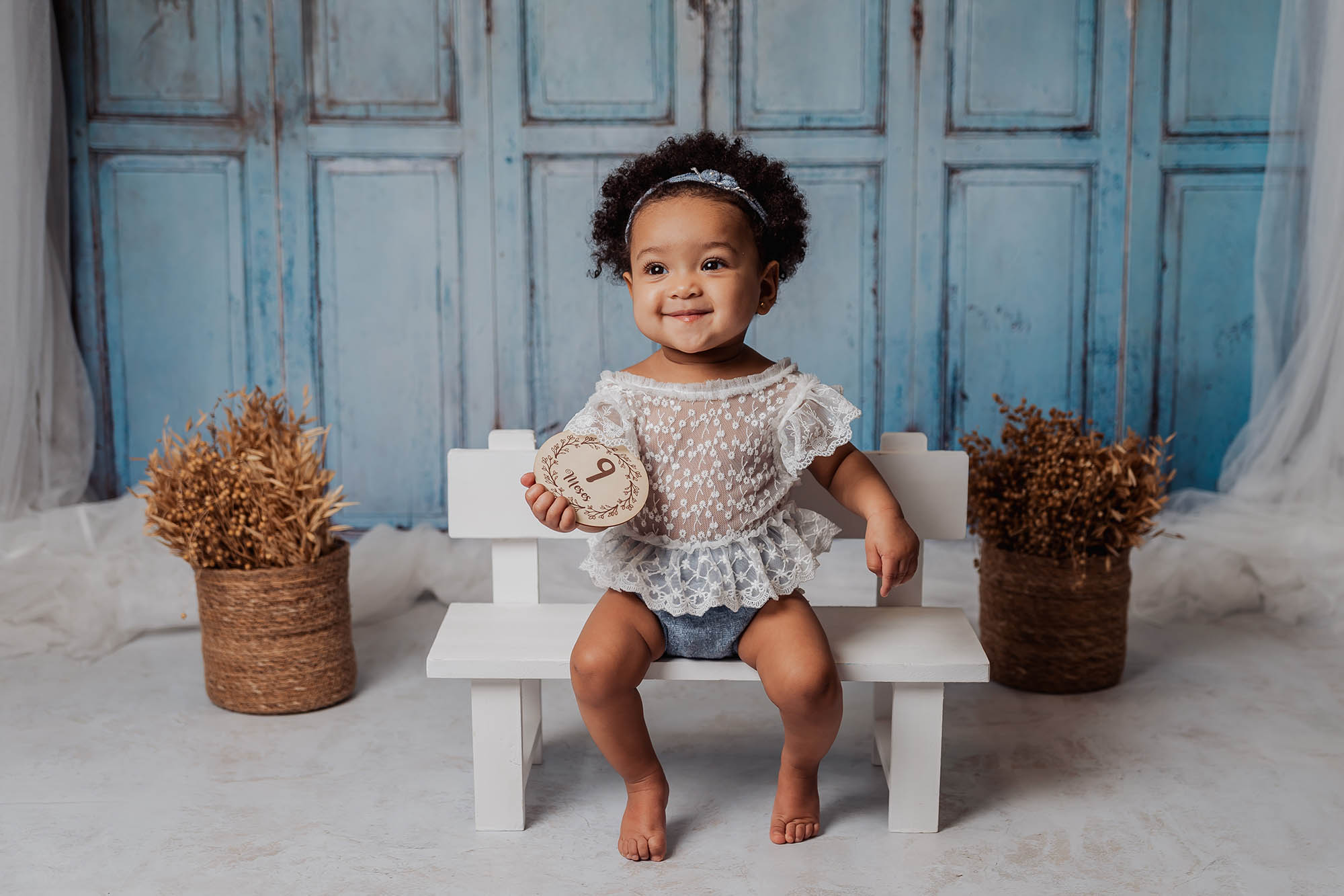 En la sesión de 8 meses tu bebé ya se mantiene sentado o incluso de pie, a parte de tener más movilidad ya se ríen a carcajadas, por lo que estas sesiones son divertidas y ya podemos interactuar con él.
